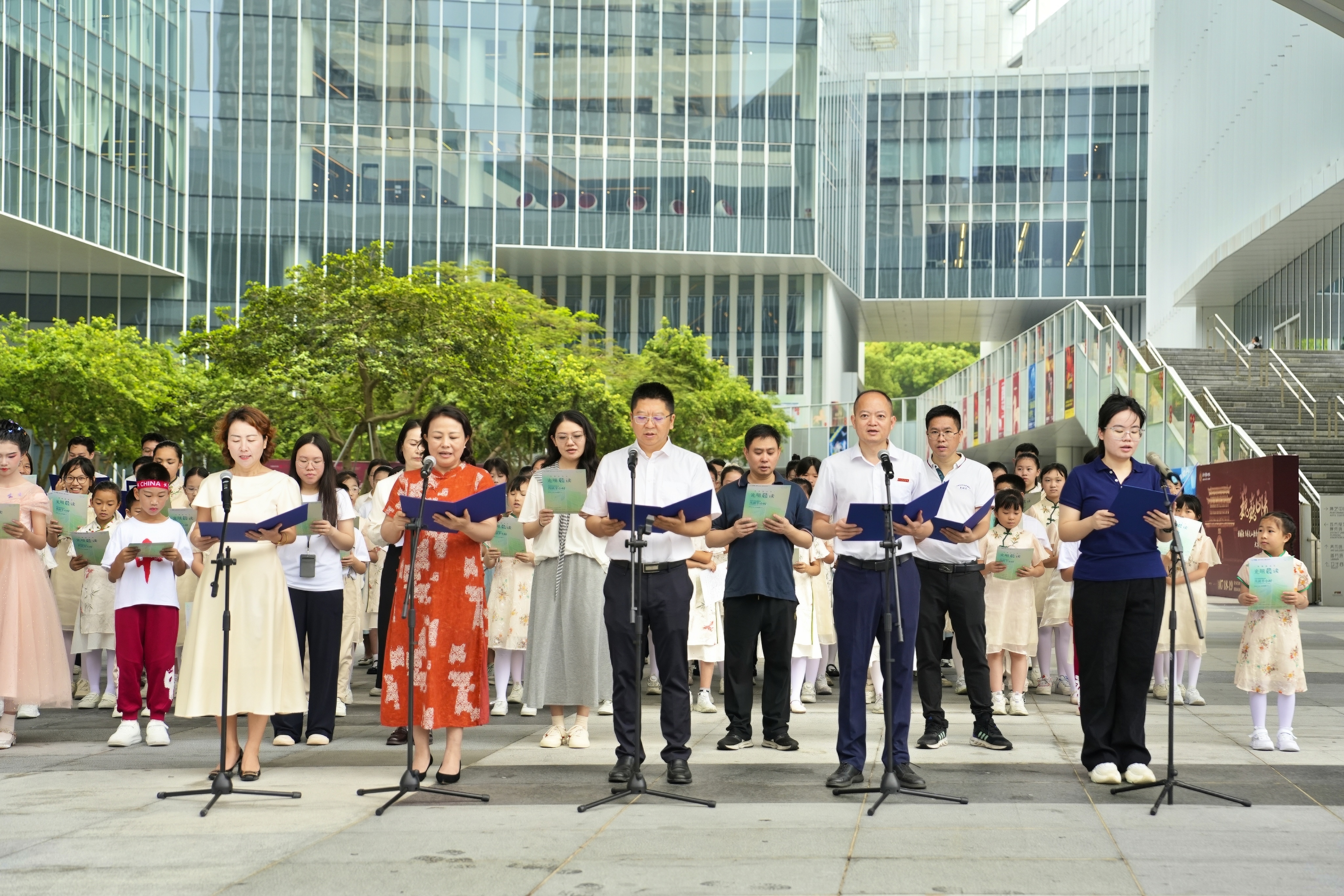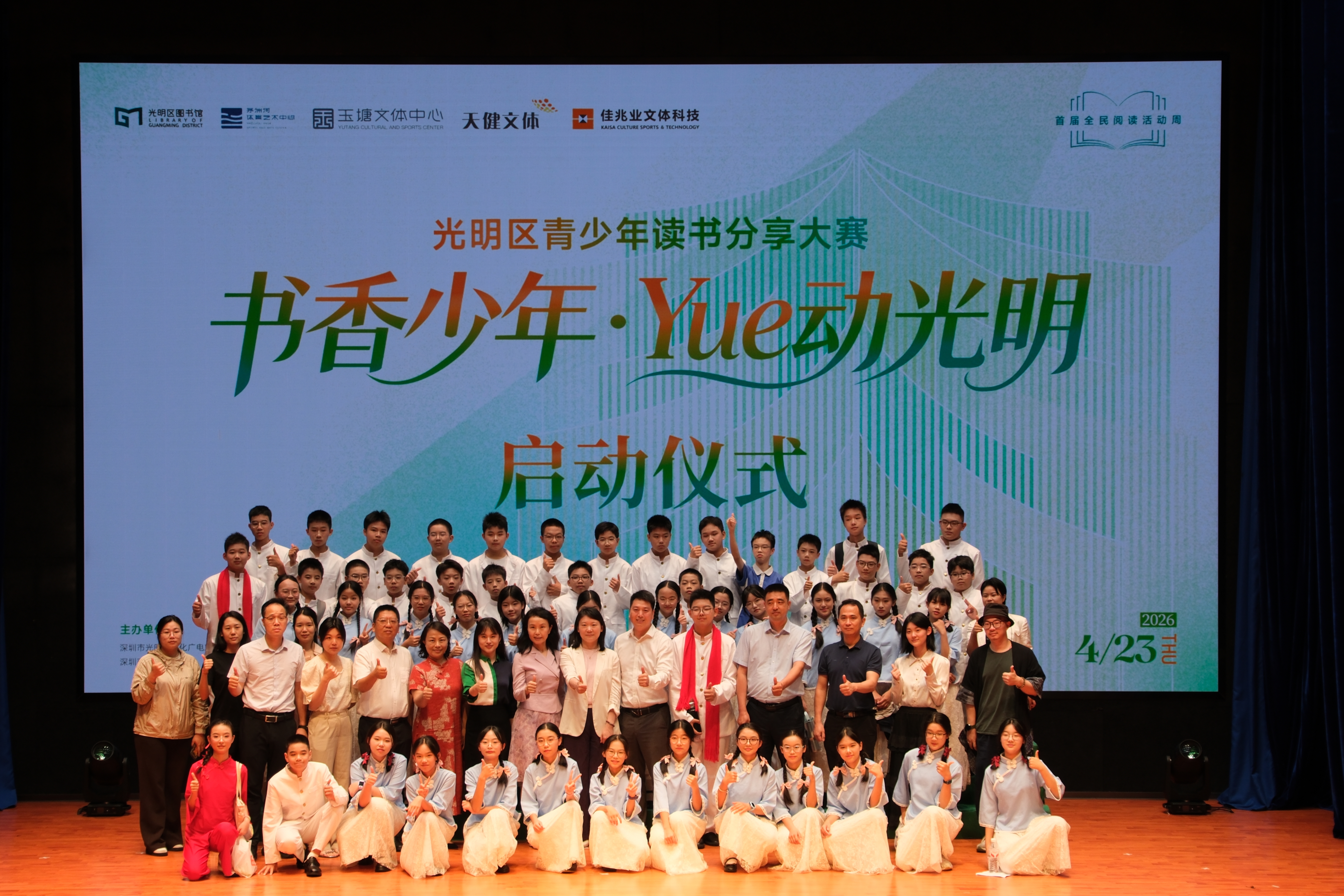 书香四月天,阅读沁人心。4月23日上午,光明文化艺术中心“光明之眼”前,声声吟诵清亮传远,让书香与声韵一同飘向四方,由深圳市光明区文化广电旅游体育局主办,深圳市光明区公共文化艺术和体育中心(区图书馆)承办的2026年4·23世界读书日粤港澳大湾区共读半小时——光明晨读系列活动暨光明区首届全民阅读活动周活动在此举行。