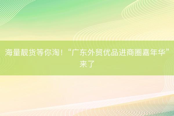 海量靓货等你淘!“广东外贸优品进商圈嘉年华”来了