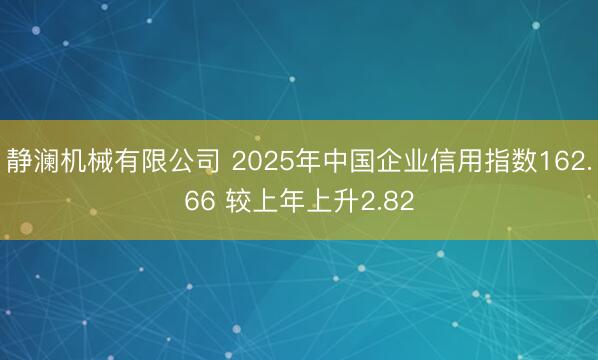 \n原标题:2025年中国企业信用指数162.66 较上年上升2.82静澜机械有限公司