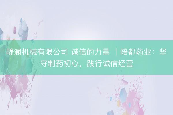静澜机械有限公司 诚信的力量 |陪都药业:坚守制药初心,践行诚信经营