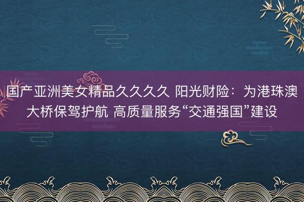 \n原标题:阳光财险:为港珠澳大桥保驾护航 高质量服务“交通强国”建设国产亚洲美女精品久久久久
