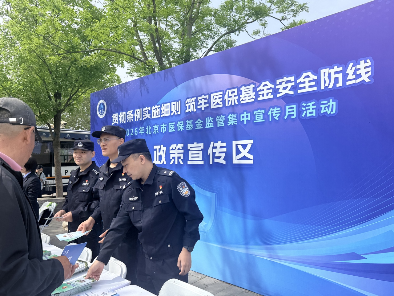 为强化医保基金监管法治宣传,全力推动《医疗保障基金使用监督管理条例实施细则》落地见效,持续提升基金监管法治化、规范化、精细化水平,切实引导基金使用各主体主动自律、自省、自警,营造人人知晓、人人参与、人人监督,合理规范使用医保基金的良好社会氛围,4月22日,北京市医保局联合市财政局、市公安局、市检察院、市卫生健康委、市人力资源社会保障局、市市场监管局、市药监局等部门,以“贯彻条例实施细则,筑牢医保基金安全防线”为主题举办2026年医保基金监管集中宣传月户外宣传活动。